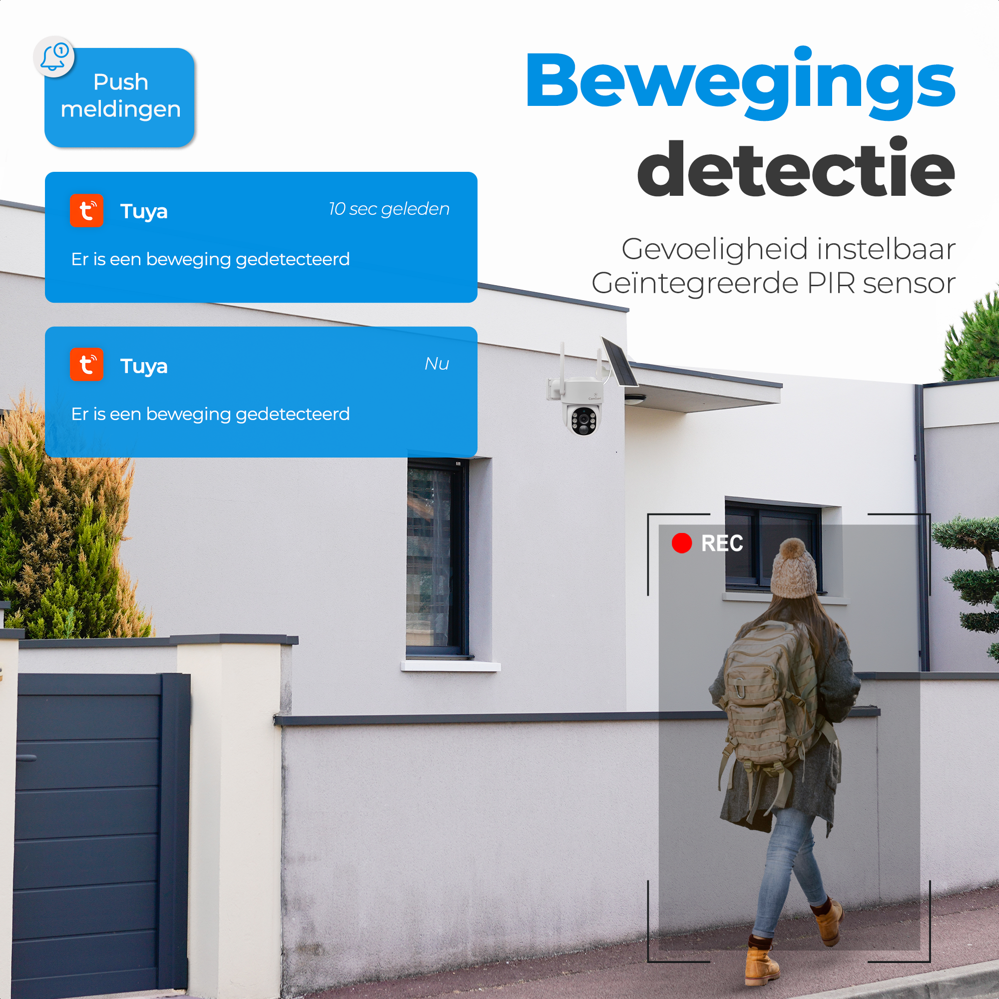 Overal te plaatsen – zonder wifi of stroom Met de Camguard 4G beveiligingscamera met zonnepaneel heeft u geen wifi-netwerk of...