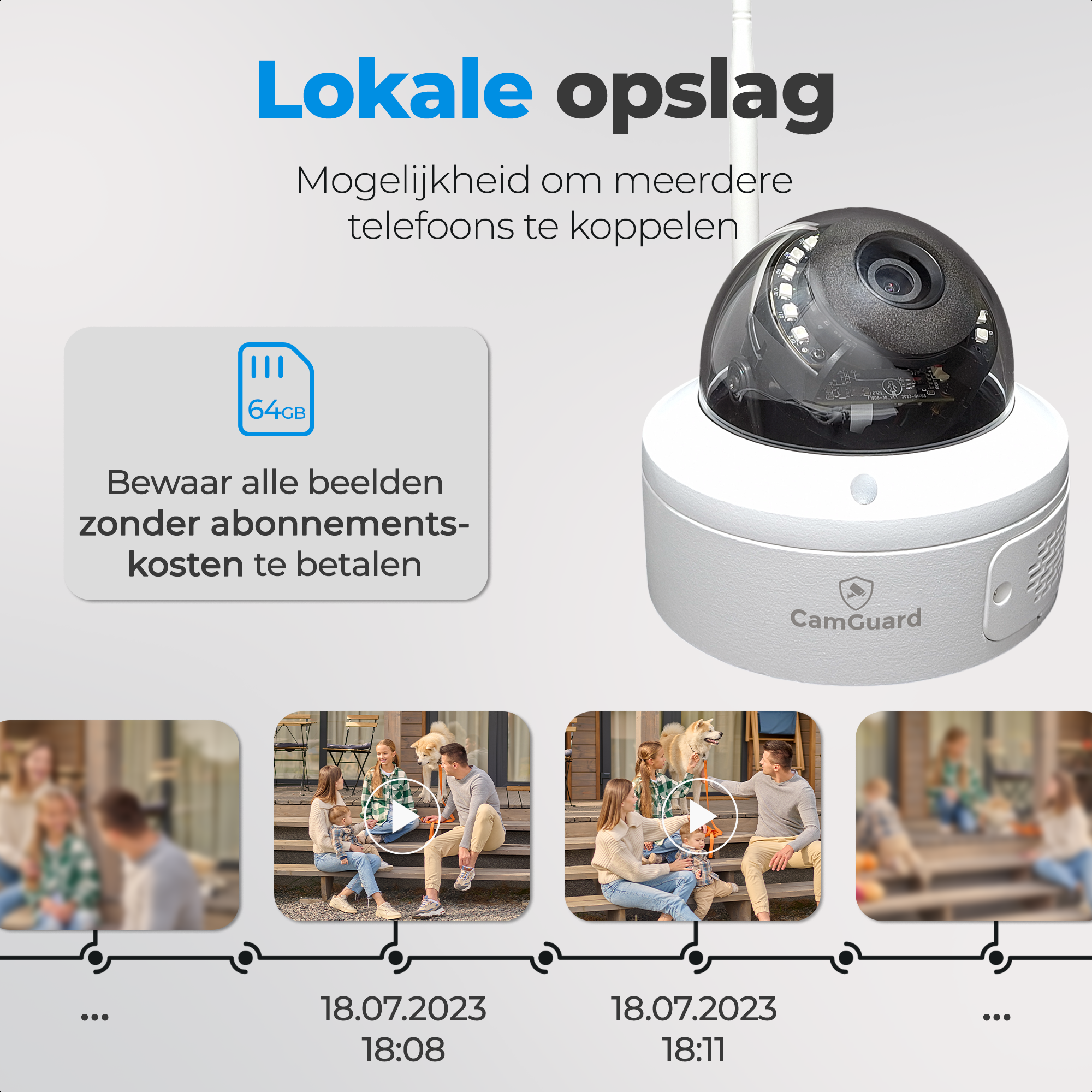 ✅ Lokale opslag zonder abonnement – Bewaar opnames op de meegeleverde 64GB SD-kaart. Optioneel: cloudopslag.